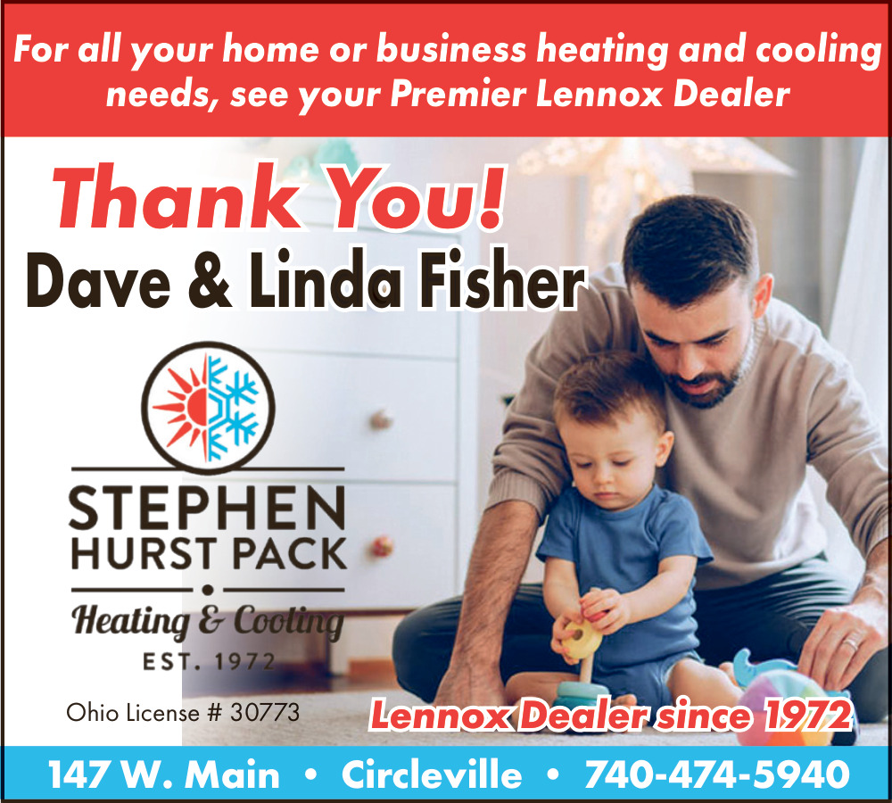 Mar 05, 2026. Stephen Hurst Pack Heating & Cooling, Inc. Plumbing, HVAC & Electrical Ads from The Circleville Herald